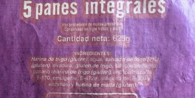 supermercados. Pues en muchos supermercados, donde venden un pan integral, realmente están vendiendo pan parcialmente integral. Es decir, un pan donde el primer ingrediente es harina de trigo y el segundo harina integral de trigo, nos está diciendo que la harina principal NO es integral. Por lo tanto, es un pan con harina integral, pero no totalmente