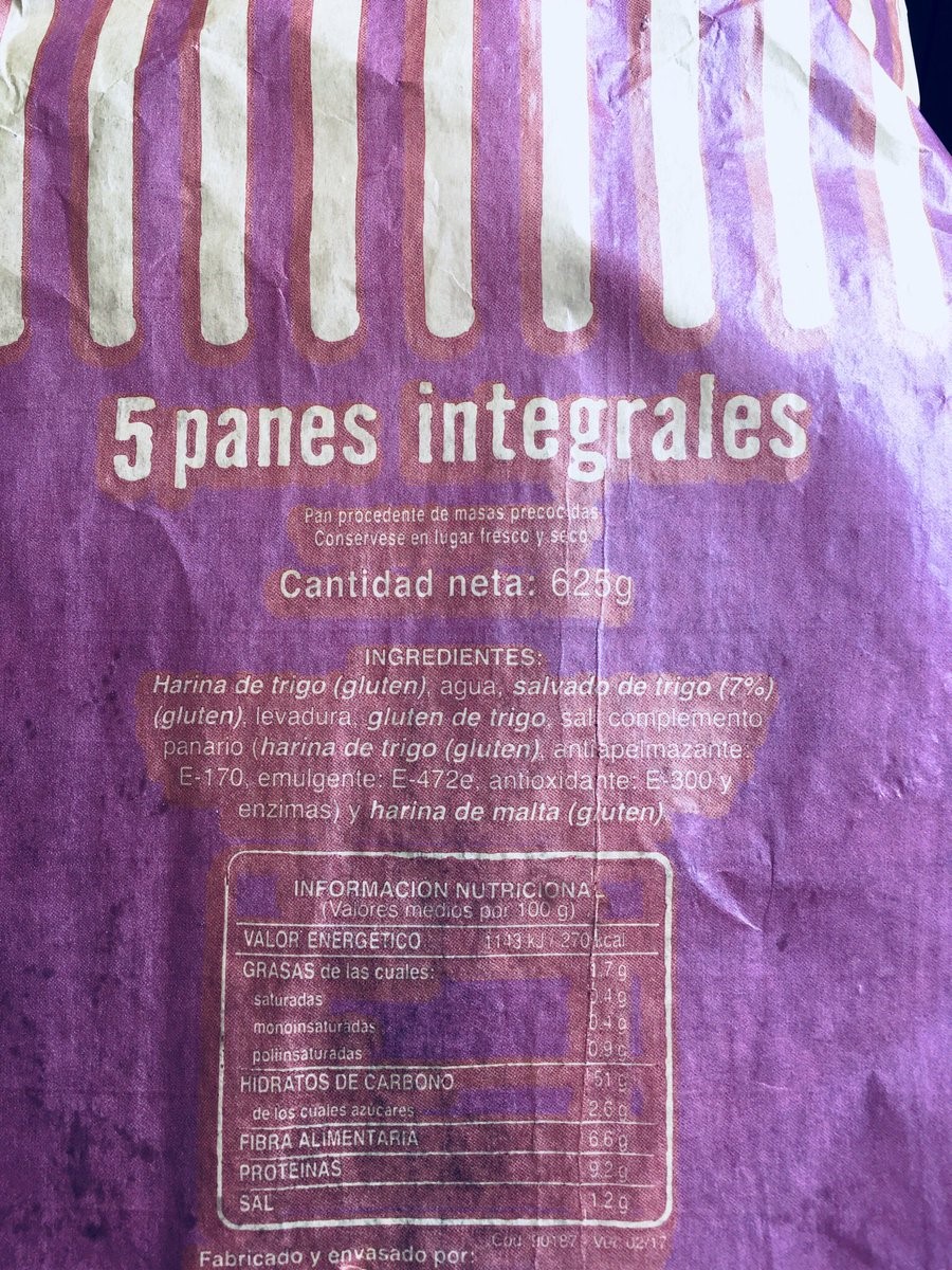 Actualmente no es tan fácil como parece encontrar pan realmente integral en supermercados. Pues en muchos supermercados, donde venden un pan integral, realmente están vendiendo pan parcialmente integral. Es decir, un pan donde el primer ingrediente es harina de trigo y el segundo harina integral de trigo, nos está diciendo que la harina principal NO es integral. Por lo tanto, es un pan con harina integral, pero no totalmente