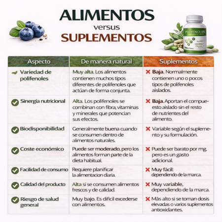 ¿ES MEJOR OBTENER LOS POLIFENOLES A TRAVÉS DE ALIMENTOS NATURALES O MEDIANTE SUPLEMENTOS?