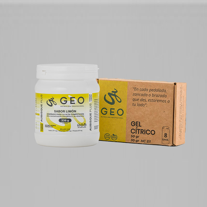 50g de gel con 30 g de hidratos con una combinación 2:1 para tener un aporte de energía rápida y energía más prolongada con el fin de tener una energía más sostenida en el tiempo.