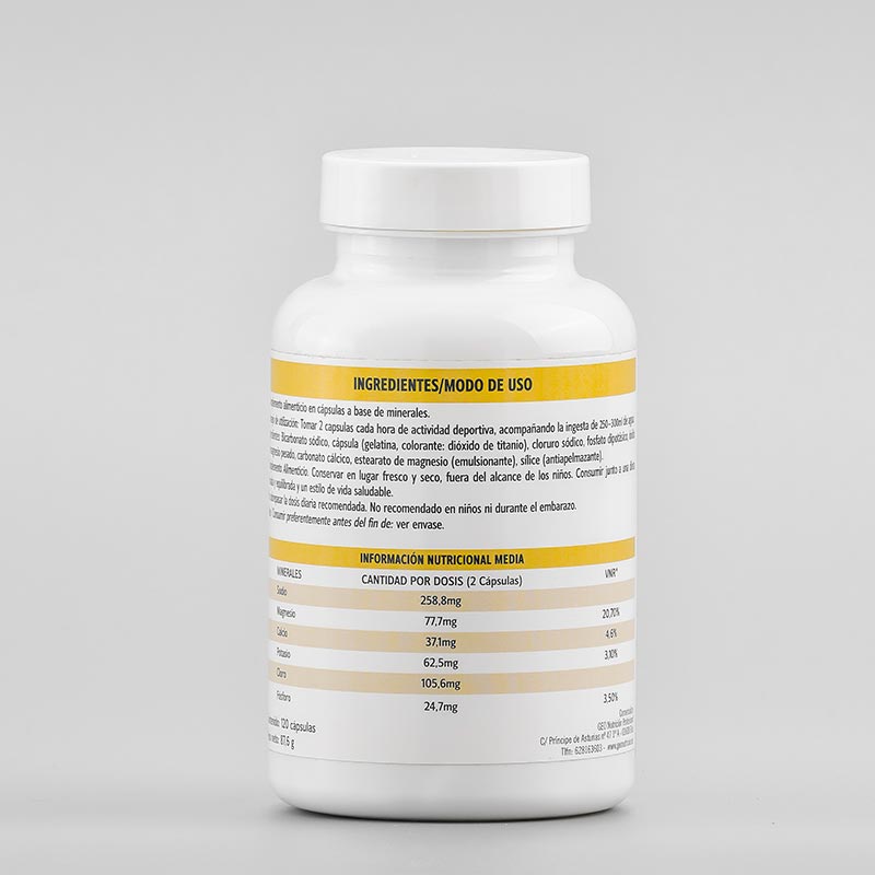 El Sodio es el mineral más importante de reponer cuando sudamos, con una ingesta (2 capsulas) de nuestras sales obtendrás 259 mg de Sodio, 78 mg de Magnesio y 37 mg de Calcio entre otros. Compara nuestra ingesta con las de otras marcas del mercado y verás que SON LAS MÁS COMPENSADAS.