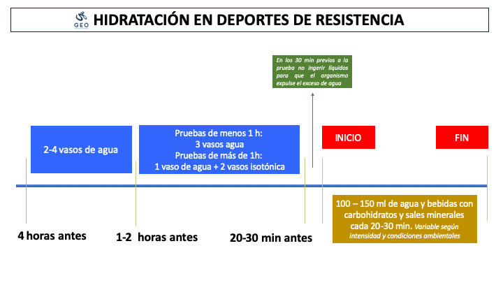 En este sentido la ingesta de 150ml cada 20 – 30 minutos de bebidas que aporten agua y sales minerales como GEO AUBISQUE es suficiente para mantener un estado de hidratación óptimo y reponer electrolitos.